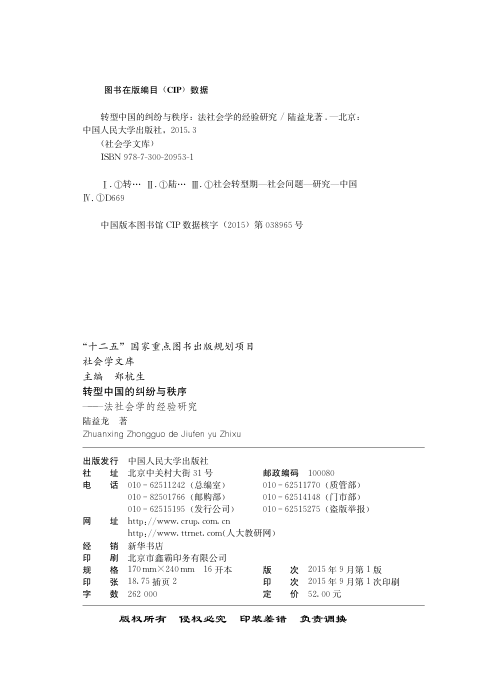 转型中国的纠纷与秩序:法社会学的经验研究👈点击保存