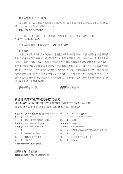 本书由国家知识产权局专利局专利审查协作湖北中心组织编写,立足于新能源汽车产业快速发展的背景,系统梳理了全球及中国专利布局的演进脉络。通过详实的专利数据分析,揭示技术热点与竞争痛点,展现传统车企与造车新势力在关键技术领域的博弈格局。内容涵盖动力电池、电驱系统、整车控制等核心领域,兼具政策解读与技术趋势预判,为产业决策者、研发人员和知识产权从业者提供权威参考。作为‘审协湖北中心知识产权服务丛书’的重要组成部分,本书凝聚多年课题研究成果,兼具专业性与前瞻性,是理解新能源汽车技术竞争底层逻辑的优质读本。