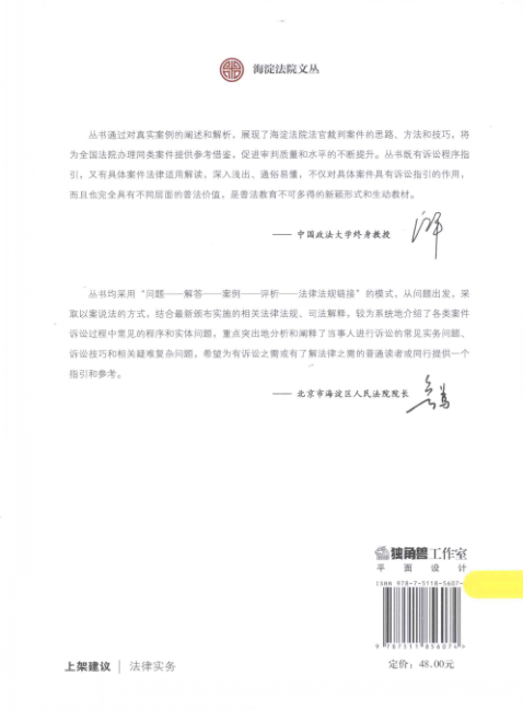 本书由北京市海淀区人民法院法官团队主编,立足真实案例与审判实践,系统梳理买卖合同纠纷中的常见诉讼问题。采用“问题—解答—案例—评析—法规链接”的结构,条理清晰,兼顾程序与实体,兼具实务指引与普法价值。内容深入浅出,适合法官、律师、法务及法律从业者参考使用,也为民商事诉讼学习者提供生动教材。源自“海淀法院文丛”系列,权威性与实用性并重,是处理买卖合同纠纷不可多得的实务工具书。