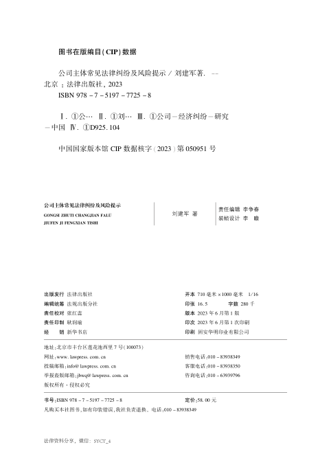 公司主体常见法律纠纷及风险提示 202306 刘建军👈点击保存