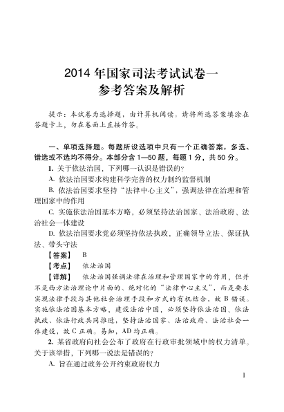 2014年国家司法考试试题答案及解析👈点击保存