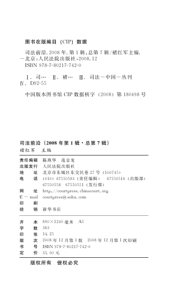 司法前沿 2008年第1辑 总第7辑👈点击保存