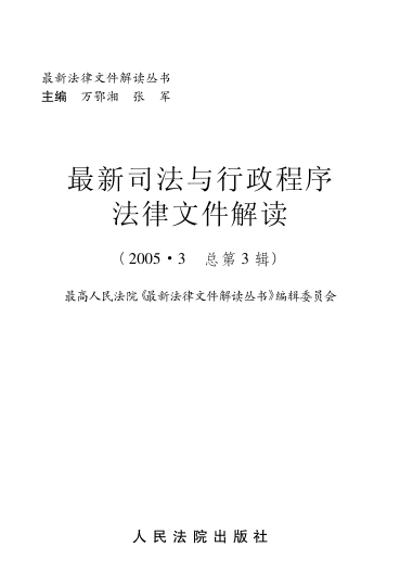 本书为最高人民法院《最新法律文件解读丛书》2005年第3辑(总第3辑),由万鄂湘、张军主编,聚焦司法与行政程序领域的最新法律文件解读。内容涵盖最高人民法院、国务院等机构发布的解释性法律文件、批复、通知等,结合实务热点与难点,由参与立法与司法解释起草的专家权威解析,帮助读者准确把握法律适用要点。书中还收录了2005年施行的《国务院工作规则》全文,是了解当时法治动态与行政体制改革的重要参考资料。适合法官、检察官、行政执法人员、律师及法律研究者阅读。