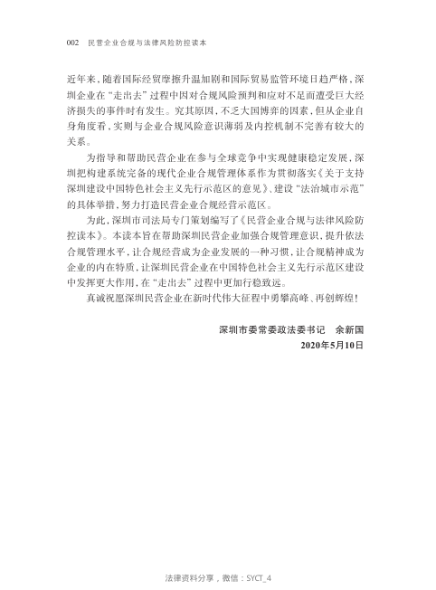 本书由中共深圳市委全面依法治市委员会办公室、深圳市司法局、深圳市律师协会联合编撰,立足深圳作为改革开放前沿的实践需求,系统回应民营企业在全球化竞争中的合规挑战。内容聚焦企业合规管理体系建设与法律风险防控实务,融合政策导向与典型案例,兼具指导性与可操作性。书中强调合规不仅是应对监管的“安全阀”,更是企业核心竞争力的源泉。通过华为、西门子等标杆企业的经验启示,引导民营企业将合规内化为文化基因。适合作为企业管理者、法务人员及创业者提升合规意识的重要参考。