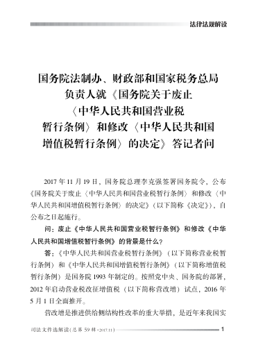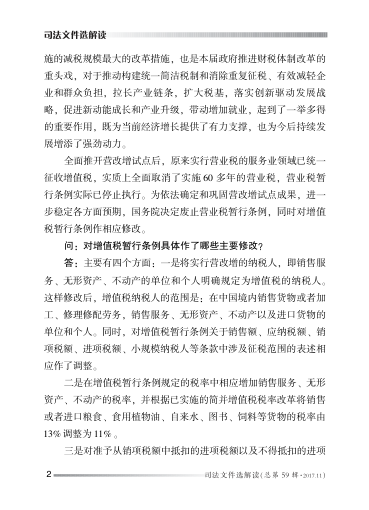 本书由最高人民法院研究室编,人民法院出版社于2018年出版,是《司法工作丛书》系列的重要组成部分。本期聚焦2017年重大财税改革——营业税全面退出历史舞台、增值税暂行条例修订的法律解读。内容围绕国务院废止营业税条例及修改增值税条例的背景与要点,系统解析营改增试点全面推开后的制度调整,涵盖纳税人范围扩展、税率结构优化、进项税额抵扣规则变化等核心议题。作为权威司法解读资料,本书为法律实务工作者、税务从业人员及政策研究者提供了准确、及时的法规理解支持,是把握财税体制改革脉络的重要参考。
