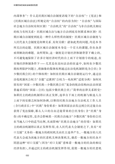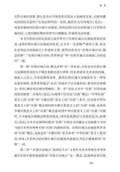 全书分为三辑:概念诠释、性质解读与目的追问,既具理论深度,又回应现实挑战。书中提出在法治进程中如何实现少数民族权利个体化、公权力合理界定、民族自治地方法律关系重构等关键问题,发人深省。虽为论文结集,逻辑清晰,视角中立,是理解中国民族政策与宪制安排的重要学术参考。