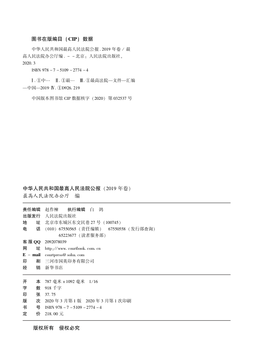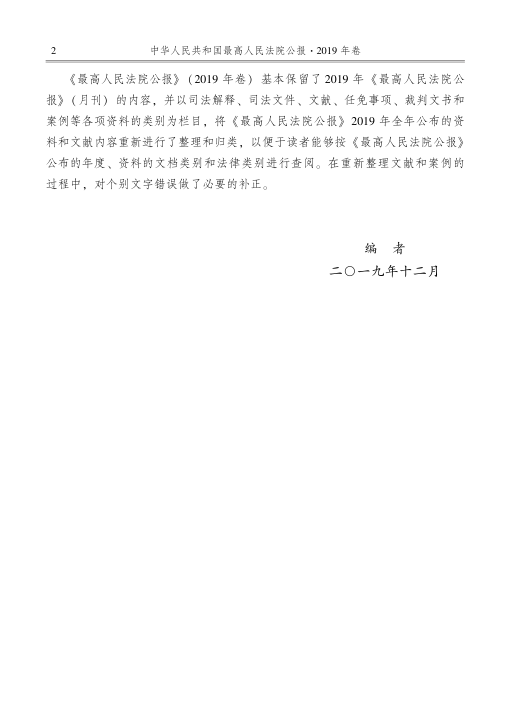 本书由最高人民法院办公厅权威编纂,是2019年度人民法院司法信息的官方汇编,系统收录了全年发布的司法解释、司法文件、典型案例、裁判文书及重要文献资料。作为我国审判工作和司法制度的重要公开文献,《最高人民法院公报》具有高度的权威性、专业性和指导性,是法律从业者、研究者及司法机关了解国家司法动态、把握裁判标准的重要参考。