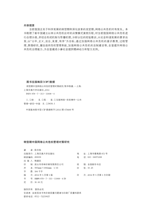 本书聚焦中国社会转型期频发的网络公共危机,系统梳理了公共危机应对的决策演变历程,结合典型案例如‘躲猫猫’、‘毒奶粉’等事件,深入剖析网络舆情的形成机制与传播规律。作者陈华栋基于上海市社科规划课题研究成果,提出以公平、正义、法治、有序为目标的治理路径,涵盖意识教育、过程管理、舆情研判与法制建设等多个维度,为政府提升危机响应能力提供理论支持与实践指导。内容兼具学术深度与现实关怀,是理解当代中国网络社会治理的重要参考。
