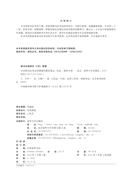 本书由司法考试民法名师隋彭生倾力编写,紧扣最新考试大纲,以清晰脉络和重点突出的风格系统梳理民法核心知识点。全书采用“夹叙夹议”方式,融合案例、真题与法理讲解,将抽象法律条文具象化,帮助考生在真实情境中掌握考点。书中内容详略得当,主次分明,既避免冗长堆砌,又确保知识体系完整,特别适合基础阶段复习使用。作为历经多年检验的经典应试教材,《课堂笔记》已被众多高分考生验证为“事半功倍”的备考利器,是法考路上不可或缺的实战指南。