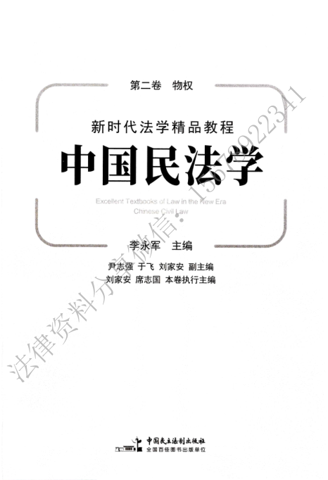 本书为《中国民法学》系列教材的第二卷,聚焦物权编,由李永军教授主编,汇集中国政法大学多位民法领域专家共同撰写。内容涵盖物权法基本原理、所有权、用益物权、担保物权及占有制度等核心议题,体系完整,逻辑严密。撰稿人包括刘家安、新文静、王雷、席志国、吴香香等知名学者,兼具理论深度与实务关切,尤其结合《民法典》最新规范进行系统阐释,是法学专业师生、实务工作者深入理解中国物权法律制度的重要参考。本书亦体现中国民法学研究的主流观点与学术前沿,具有较高的学术价值与教学适用性。