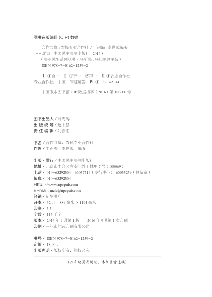 本书聚焦中国农民专业合作社的发展实践,以政策解读与案例分析相结合的方式,深入浅出地探讨了合作社在推动农业现代化、促进农民增收和实现乡村振兴中的关键作用。作为“法治民生系列丛书”之一,内容紧扣国家三农政策,涵盖合作社的设立、运行机制、权益保障及法律支持等实用议题,兼具指导性与可读性。适合基层农业工作者、农村创业者及关心乡村振兴的读者参考学习。语言通俗易懂,问题导向明确,是一本接地气的农村合作经济发展读本。