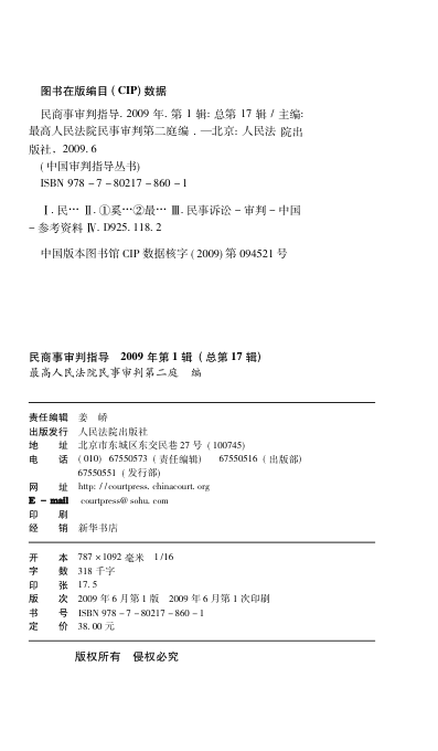 本书为最高人民法院民事审判第二庭主编的《民商事审判指导》系列第17辑,2009年第一辑,属于权威司法实务参考读物。内容涵盖民商事审判领域的最新政策解读、典型案例分析及审判实务指导,由一线法官和专家撰写,具有高度的专业性与实践价值。作为“中国审判指导丛书”的重要组成部分,本书为法官、律师、法务及法学研究者提供了宝贵的实务参考。适合关注司法动态、提升专业能力的读者收藏与研读。