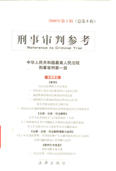 本书由最高人民法院刑事审判庭编撰,系《刑事审判参考》系列第8辑,汇集2000年重要刑事案例与司法解释。书中精选多起典型案件,如高远非法吸收公众存款案、戴恩辉销售假冒注册商标商品案等,深入剖析法律适用难点,涵盖罪名认定、刑期表述、跨国犯罪追责等实务问题。同时收录《大气污染防治法》相关节录及打击拐卖妇女儿童犯罪的政策通知,兼具案例指导与法规解读双重价值。适合法官、检察官、律师及法学研究者参考使用,是了解千禧年初中国刑事司法实践的重要资料。