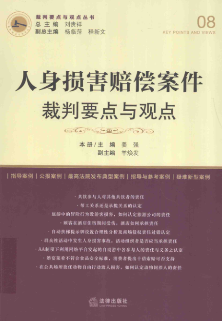 本书聚焦人身损害赔偿领域的司法实践,精选指导案例、公报案例及最高法院发布的典型案例,系统梳理裁判要点与司法观点。内容涵盖共饮责任、旅游损害、酒店安全保障、公共场所动物致害、群众性活动组织者义务等热点问题,兼具实务性与理论深度。主编姜强结合多年审判经验,对各类纠纷中的法律适用难点进行精要评析,是法官、律师及法务人员处理侵权案件的重要参考。结构清晰,案例真实,适合实务工作者快速掌握裁判思路。