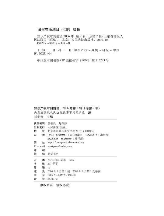 本书由山东省高级人民法院民事审判第三庭编撰,聚焦2006年知识产权审判领域的前沿动态与典型案例,涵盖判例研究与司法实践分析,具有较强的实务参考价值。内容权威、专业,适合法官、律师、知识产权从业者及法学研究者阅读。作为早期系统整理知识产权司法实践的重要资料之一,对理解我国知识产权审判发展脉络颇具意义。