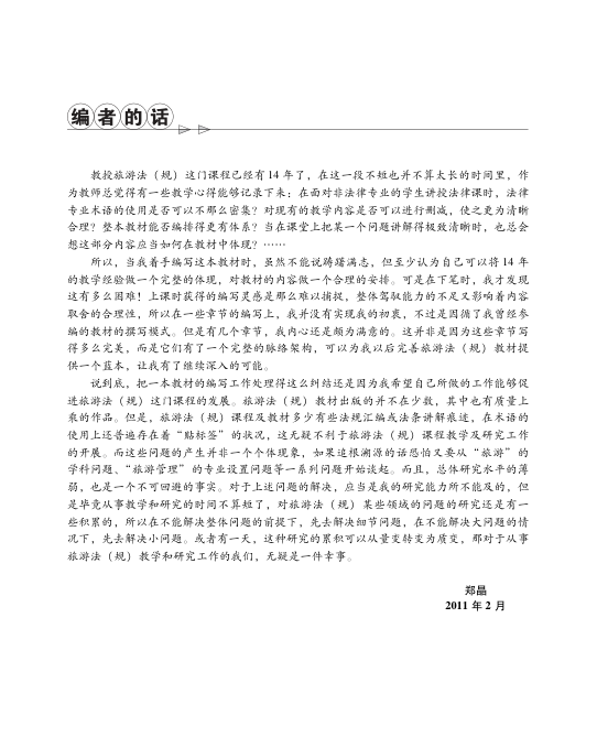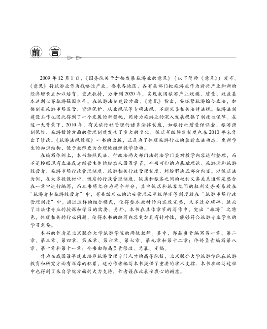 本书是面向旅游管理、酒店管理及相关专业学生的实用型法规教材,系统梳理了我国旅游行业的核心法律法规。内容涵盖旅游法基础理论、旅游消费权益、市场监管、出入境管理、资源保护及纠纷解决机制,紧扣最新立法变化,如旅行社质量保证金制度、旅游强制保险等,体现2010年前后的重要法规更新。编者基于14年教学经验,打破传统法规汇编模式,按民法与行政法逻辑重构体系,突出‘旅游’特色,增强学习的条理性和针对性。既适合作为高校教材,也适合旅游管理部门和企业人员培训使用。结构清晰、语言平实,是非法律专业学生理解旅游法治建设的理想入门读物。