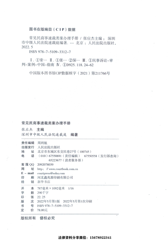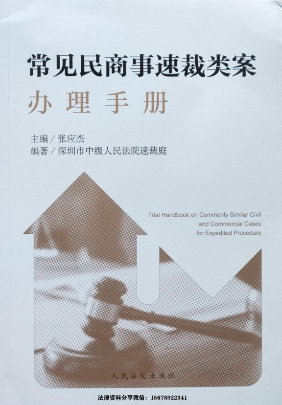 本书由深圳市中级人民法院速裁庭编著,张应杰主编,聚焦民商事案件速裁实践,系统梳理常见类案办理要点与裁判思路。内容涵盖程序规范、实体处理与典型案型分析,立足司法一线经验,兼具实用性与指导性,是法官、律师及法务工作者高效处理速裁案件的重要参考。全书结构清晰,语言简明,立足中国司法实践,为实务工作者提供可操作的流程指引与法律适用建议。