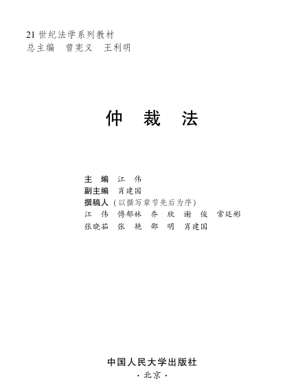 作为21世纪法学系列教材之一,《仲裁法》由江伟教授主编,肖建国等知名学者共同撰写,中国人民大学出版社出版,体系严谨、内容前沿。本书立足中国仲裁法律制度实践,结合理论与实务,系统阐述仲裁法的基本原理、制度构造与程序规则,兼具学术深度与教学适用性。适合作为高校法学专业教材,也为民商事争议解决研究提供重要参考。文本源自教材前言与编委会信息,展现其深厚的学术背景与权威编写阵容。