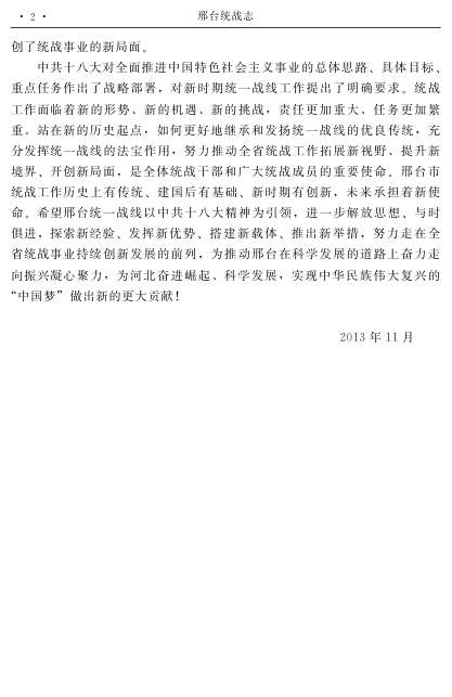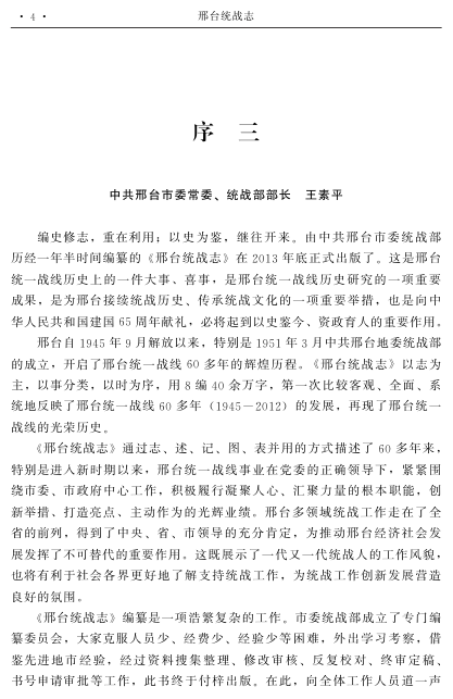 《邢台统战志》是河北省首部市级统战志书,系统记述了邢台统一战线自1945年解放以来至2012年共60多年的发展历程。本书由中共邢台市委统战部历时一年半精心编纂,全书共八编,逾40万字,通过志、述、记、图、表等多种形式,全面、客观、真实地再现了邢台统战工作在不同历史时期的实践与成就。从巩固人民政权到服务改革开放,从促进社会和谐到推动科学发展,本书不仅是党史和地方史的重要组成部分,也为新时代统战工作提供了宝贵经验。作为一部兼具史料价值与现实意义的权威记录,它既是历史的见证,也是资政育人的有力工具。