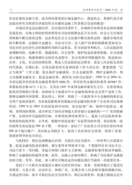 本书为2005年度《商事审判研究》的权威汇编,收录了广东省高级人民法院在金融债权保护、公司法与破产法实践中的重要研究成果与典型案例。书中特别收录了李毅峰副院长在金融风险防范研讨会的讲话,系统回顾了广东法院在应对亚洲金融风暴、处置广东国投破产案等重大事件中的司法实践,展现了司法机关在维护金融安全中的关键作用。内容兼具理论深度与实务价值,是了解当时商事审判动态、金融司法政策演变的重要参考资料。