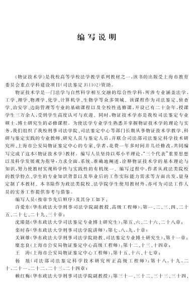 《物证技术学》是华东政法大学组织编写的一部兼具学术性与实践性的法学教材,系统整合了法学、理学、工学、计算机与生物学等多学科知识,全面覆盖物证技术的基本理论与实务应用。本书由刑事司法、司法鉴定及公安实务领域的专家联合执笔,内容深入浅出,案例生动,语言兼顾专业性与可读性,适用于法学本科教学,亦可为司法实务工作者提供权威参考。作为上海市重点学科建设项目成果,本书凝聚了多年教学与鉴定实践经验,是理解现代物证技术体系的重要入门与进阶读物。