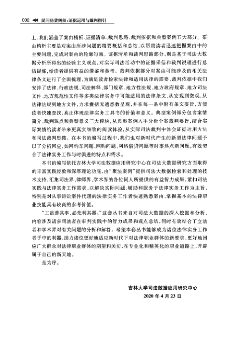 本书是吉林大学司法数据应用研究系列丛书之一,聚焦民间借贷纠纷,依托千万份公开裁判文书,通过司法大数据分析,系统梳理证据运用与裁判规则。全书涵盖案由精析、证据清单、裁判思路、裁判依据和典型案例五大模块,结构清晰,实用性强。其中,证据清单以表格形式还原诉讼举证场景,助力高效准备材料;裁判思路提炼主流及差异化司法观点,辅以立法与学理解读,拓展思维深度。书中还回应网络借贷等新型问题,紧贴时代需求。作为法律实务工具书,它为律师、法官、法务等群体提供了一站式办案参考,真正实现‘从实务中来,到实务中去’的螺旋式提升。