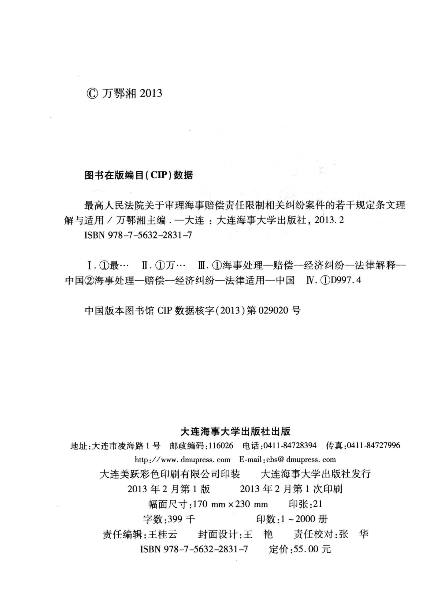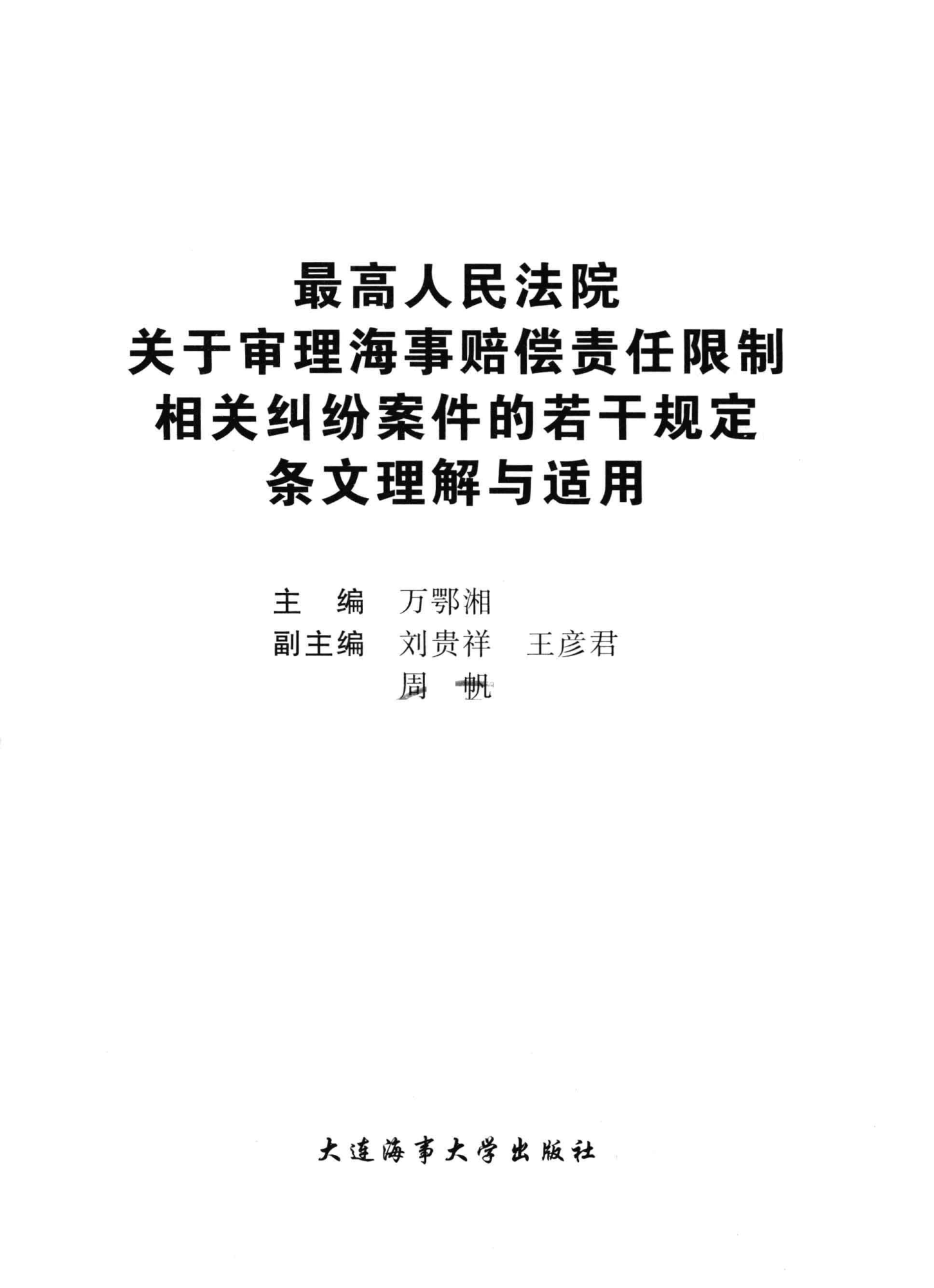 最高人民法院关于审理海事赔偿责任限制相关纠纷案件的若干规定条文理解与适用_13312816👈点击保存