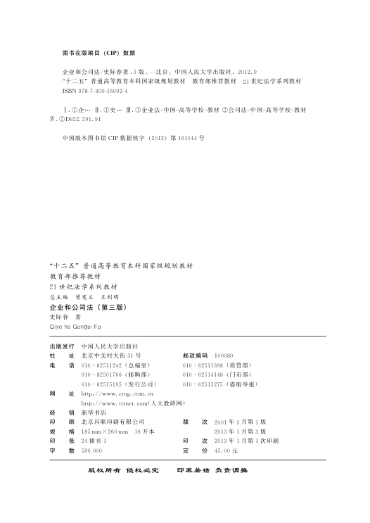本书为“十二五”普通高等教育本科国家级规划教材,由中国人民大学出版社出版,史际春教授撰写。作为《企业和公司法》的第三版,内容紧扣中国现行企业与公司法律制度,系统梳理了公司设立、治理结构、股权机制、合并分立及法律责任等核心议题,兼具理论深度与实务指导价值。全书结构清晰,语言严谨,适合作为高校法学专业教材,也为企业法务、法律从业者提供权威参考。作为教育部推荐教材,其学术规范性与实践适用性均经广泛验证,是理解中国现代商法体系的重要读本。