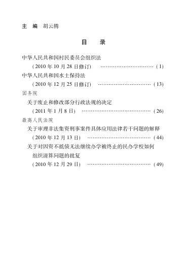 本书由最高人民法院研究室编纂,人民法院出版社出版,属于‘司法工作丛书’系列,系2011年第五辑的法律文件选编。内容涵盖当年重要的司法解释、政策性文件及法律法规修订文本,具有高度的权威性与实务参考价值。书中收录了如《村民委员会组织法》等重要法律文本及其修订说明,涉及基层治理、民主监督、农村自治等关键议题,是了解当时司法动态、政策导向和基层法治实践的重要资料。适合法官、律师、法学研究者及公共管理从业者阅读参考。排版清晰,便于查阅,是法律专业人员案头常备的工具书之一。