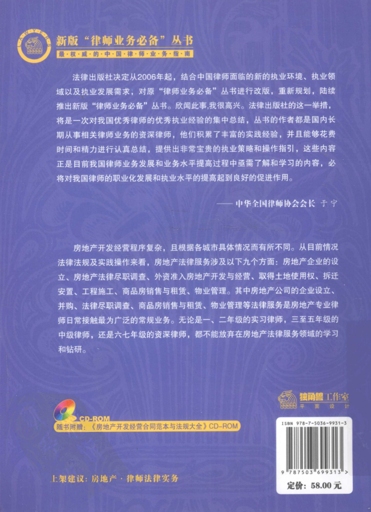 无论是实习律师夯实基础,还是资深律师拓展业务,本书都具有极强的参考价值。书中融合作者多年执业经验,注重实务策略与法律应用的结合,助力提升专业服务能力。随书附赠《房地产开发经营合同范本与法规大全》CD-ROM,方便查阅与实务调用,堪称房地产法律领域的实用工具书。