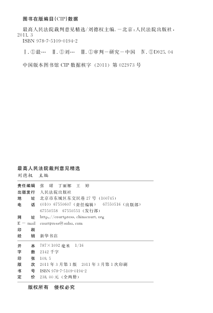 本书由刘德权主编,人民法院出版社出版,系统梳理了最高人民法院历年发布的裁判文书和公报案例中的近1800件具有指导意义的裁判意见。全书以法律精神为指引,提炼裁判要旨、要点提示,内容涵盖民商事审判多个领域,是统一裁判尺度、理解司法逻辑的重要参考。