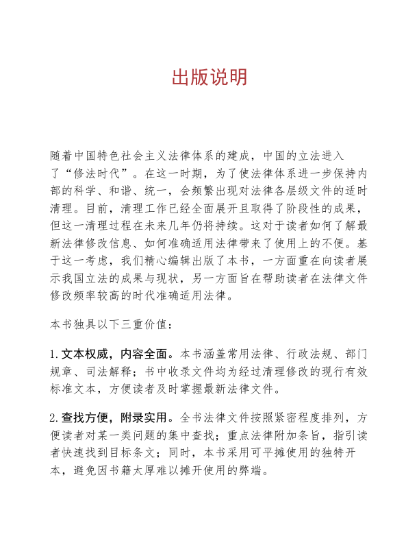 这本《常用法律法规全书(2019年版)》由中国法制出版社权威编纂,是法律实务工作者和研究者的得力助手。全书收录现行有效的常用法律、行政法规、部门规章及司法解释,文本标准、更新及时,确保适用准确。特别设计可平摊使用的开本,查阅更便捷;重点法律条文附带条旨,快速定位关键内容。购买后还可享受免费修订增补服务,并通过公众号获取最新立法动态,真正实现长效实用。无论是日常查询还是案头参考,都极具价值。