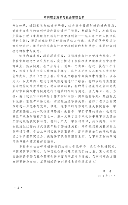 审判理念更新与社会管理创新:包头中级人民法院研讨文集👈点击保存