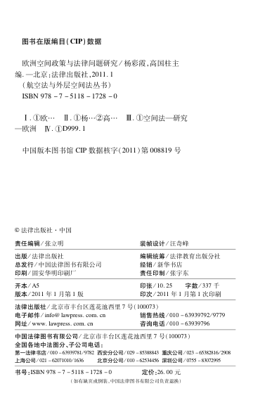 本书由杨彩霞、高国柱主编,是“航空法与外层空间法丛书”中的重要一册,聚焦欧洲在空间政策与法律领域的制度演进与实践探索。作为北京航空航天大学法学院策划的系列研究成果之一,本书立足于国际空天法治建设的大背景,系统梳理了欧洲在和平利用外空、空间立法、国际合作与责任机制等方面的政策取向与法律框架。内容兼具资料性、理论性与前瞻性,适合法学研究者、国际关系学者及航天政策从业者参考。在全球空天治理日益重要的今天,本书为理解欧洲角色提供了扎实的学术基础。