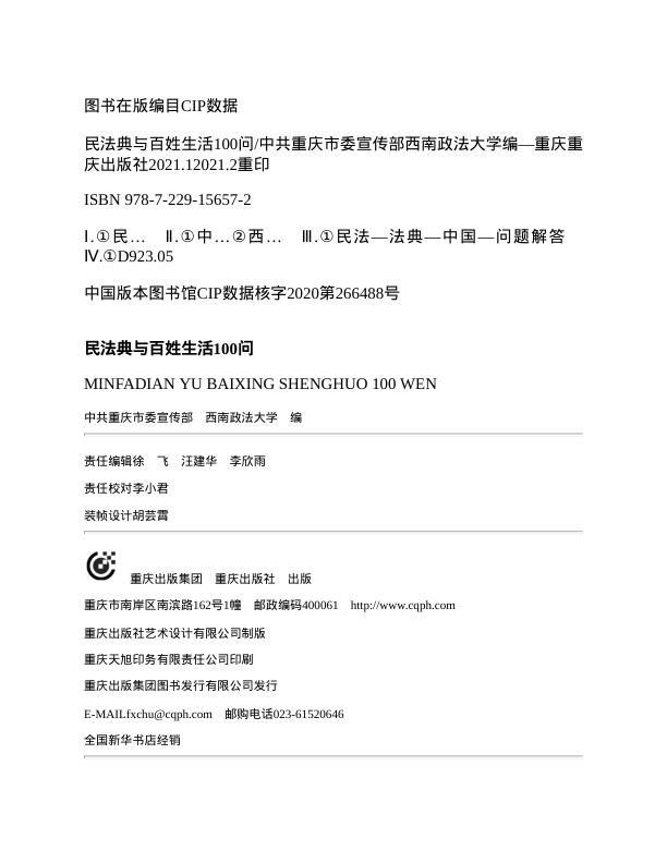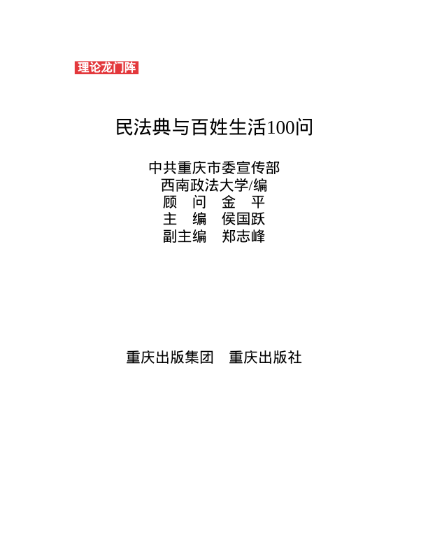 本书由中共重庆市委宣传部与西南政法大学联合编写,以贴近生活的100个实际问题为切入点,深入浅出地解读《中华人民共和国民法典》的核心内容。从婚姻家庭、继承、物权到合同、侵权责任,涵盖百姓日常最关心的法律话题。采用问答形式,语言通俗易懂,兼具权威性与实用性,是普通读者理解民法典、维护合法权益的入门佳作。