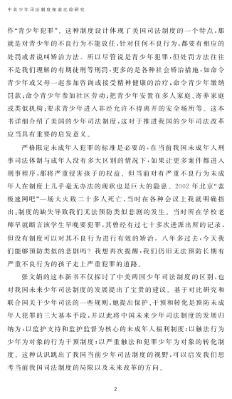 书中不仅梳理了美国少年司法中广泛定义‘青少年犯罪’背后的预防逻辑,还提出了具有中国特色的十年发展蓝图,包括建立‘三级干预机制’和‘两个支持机制’,强调社区矫治、跨部门协作与非监禁措施的重要性。这不仅是一次理论探索,更是一份可落地的改革建议书。