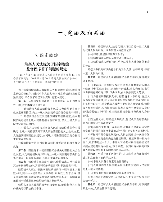 本书系统收录我国现行主要法律法规,按法律体系分为宪法及相关法、民法商法、行政法、经济法、社会法、刑法及程序法七大板块,结构清晰,便于查阅。内容涵盖《民法总则》《国家赔偿法》等核心法律及其配套司法解释,如最高人民法院关于国家赔偿监督程序的最新规定(2017年施行),体现立法与司法实践前沿。适合法律从业者、公务员、企业法务及法学研究者日常参考使用。文本源自权威发布,具有较强实用性和时效性,是案头常备的综合性法律工具书。