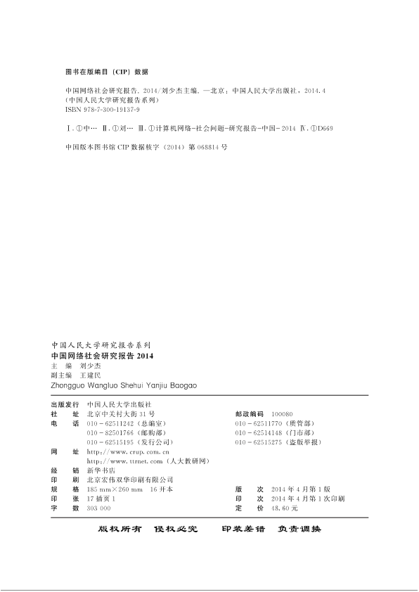 本书为中国人民大学研究报告系列之一,由刘少杰主编,聚焦2014年中国网络社会的发展状况。作为一部应用对策型研究力作,全书立足真实数据与社会现实,深入探讨计算机网络带来的社会问题与变革,涵盖网络行为、信息传播、社会治理等多个维度。内容兼具实证性、前瞻性和学术深度,是了解当年中国网络社会生态的重要参考。适合社会学、传播学研究者及公共政策制定者阅读。