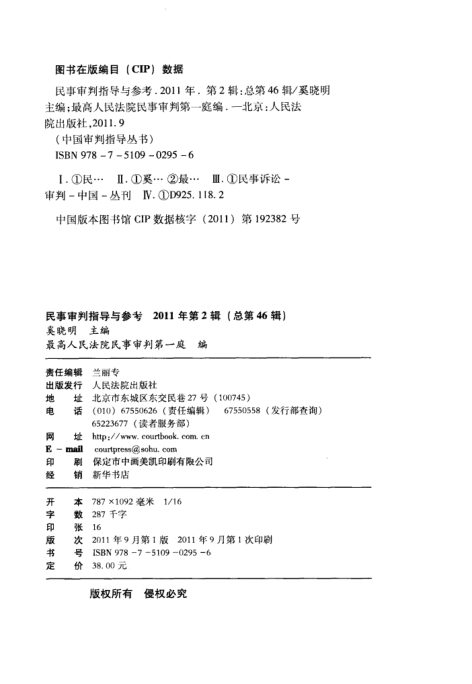 M46民事审判指导与参考 2011年 第2辑 总第46辑👈点击保存