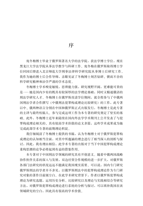 本书由黑龙江大学法学院庞冬梅博士撰写,基于其在俄罗斯著名高校的法学博士学位研究,并获国家社科基金后期资助项目支持,具有高度的学术权威性。作者精通俄语并深谙中俄刑法体系,曾参与《中俄刑法犯罪构成理论比较研究》的编译工作,积累了扎实的研究基础。