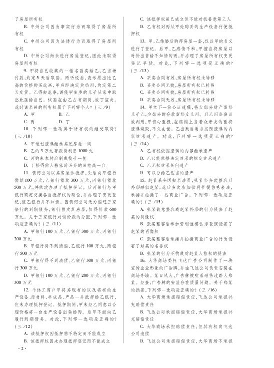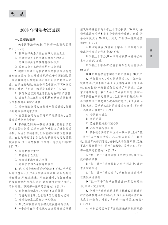 国家司法考试试题解析汇编 2008-2013 民法·商法民事诉讼法与冲裁制度👈点击保存