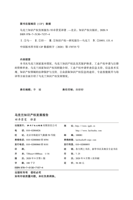 本书由西安外国语大学讲师卓景雯译著,基于其深厚的法律与翻译背景,系统梳理了乌克兰知识产权的发展现状。内容涵盖乌克兰国家概况、知识产权法律框架、工业产权申请与审查机制、国家知识产权局职能、信息技术应用、法律保护实践及公众信息获取途径等多个维度,兼具专业性与实用性。适合关注国际知识产权动态、从事涉外法律事务或“一带一路”相关研究的读者参考。资料翔实,结构清晰,是了解乌克兰创新保护体系的重要窗口。