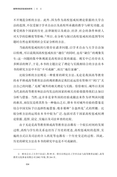 本书深入探讨了中国高校惩戒权的理论基础与实践困境,聚焦于学术自由、大学自治与学生权利保障之间的张力。作者韩兵从高校与学生关系的本质出发,系统分析惩戒权的合法性依据、权力边界、实施规范及司法介入的可能性,回应了近年来频发的高校诉讼案件背后的制度难题。通过规范分析、实证研究与比较视野,特别是对美国等国家经验的选择性借鉴,本书不仅厘清了高校规章与国家法律在惩戒权设定中的分工,也提出了实现自主与法治平衡的路径。适合教育法研究者、高校管理者、法律实务工作者及关注校园治理议题的读者。