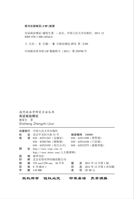 本书由谢复生教授撰写,是‘海外政治学研究方法丛书’的重要组成部分,旨在为中国读者系统引入实证政治理论的核心理念与研究方法。作者曾师从该领域奠基人威廉·赖克,深受其以经济学逻辑解析政治现象的研究范式影响。书中强调通过理性选择与演绎推理构建政治学理论,摆脱传统心理学归纳法的局限,推动政治学走向科学化、严谨化。