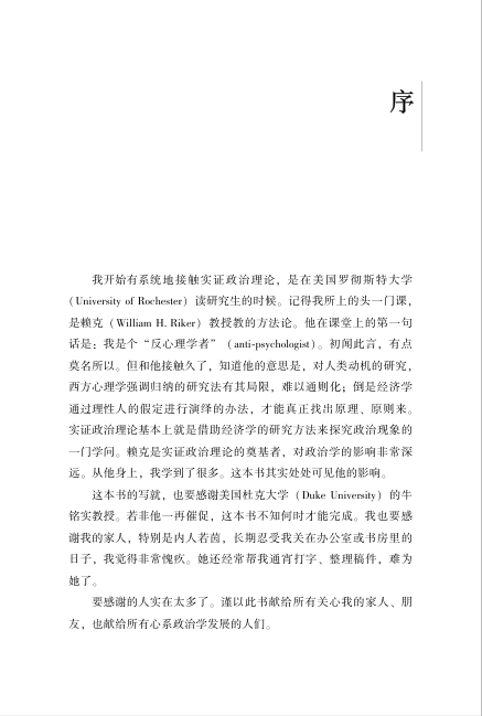 本书不仅适合政治学初学者建立方法论基础,也对希望深入理解博弈论、公共选择理论的研究者具有重要参考价值。作为国内少见的原创性方法论著作,它填补了中文世界在该领域的空白,是迈向高水平政治学研究的重要阶梯。