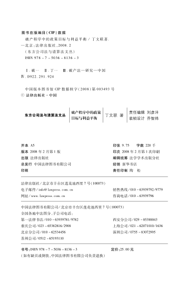 本书聚焦破产程序中最为复杂的利益冲突问题,深入探讨政策目标设定与多方利益协调的制度路径。作者丁文联结合司法实践与立法视角,以博士论文为基础打磨而成,既有理论深度,又具实务关怀。在公司法研究长期偏重设立与治理的背景下,本书填补了公司解散、清算与破产制度研究的空白,呼应了市场退出机制法治化的重要议题。作为‘东方公司法与清算法文丛’之一,它不仅体现学术自觉,更承载推动破产法治进步的使命。适合法学研究者、法官、律师及对破产法感兴趣的读者。