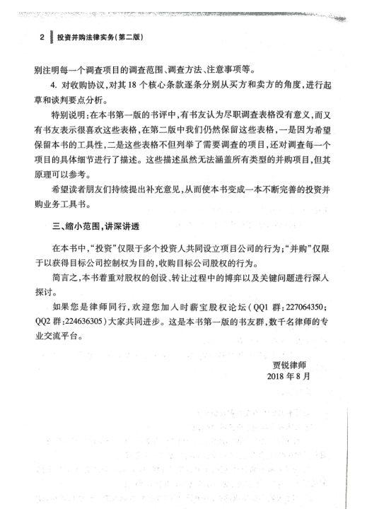 投资并购法律实务第二版 贾锐著 201年月 👈点击保存