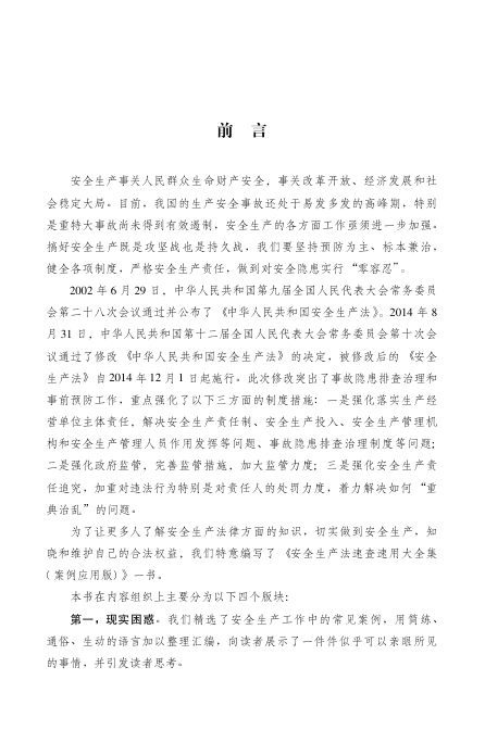 无论是企业管理人员、安全监管人员,还是普通从业人员,都能从中获得切实可行的法律指导。书中强调事故预防、责任落实与违法追责,紧扣2014年修订版《安全生产法》的重点变化,突出实用性、通俗性与便捷性,真正做到“速查速用”。