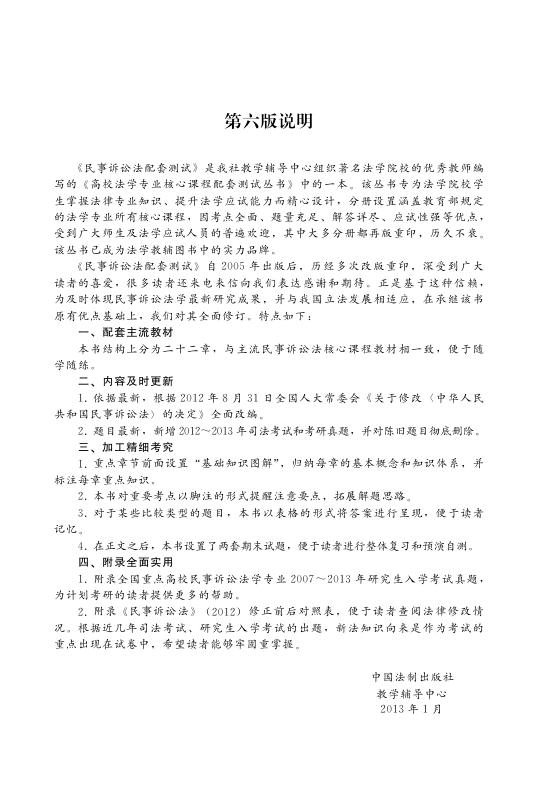 本书是《高校法学专业核心课程配套测试丛书》中的经典分册,专为法学专业学生掌握民事诉讼法知识、提升应试能力而设计。第六版紧跟2012年《民事诉讼法》重大修订,全面更新内容,收录最新司法考试与考研真题,剔除过时题目,确保实战性与时效性。每章配备‘基础知识图解’与考点脚注,帮助理清知识体系、把握重点难点;创新采用表格对比解析,强化记忆效果。书末附两套期末模拟题及全国重点高校2007–2013年研究生入学真题,另含新旧法条对照表,助力深入理解立法变迁。题量充足、解析详尽,是备考司法考试与考研的实用利器。