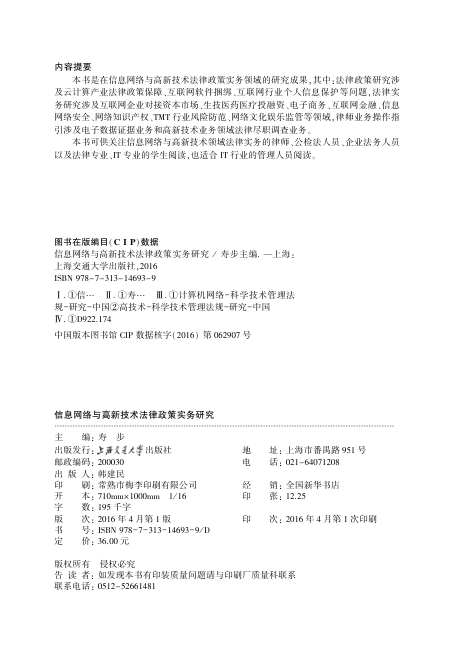 信息网络与高新技术法律政策实务研究👈点击保存